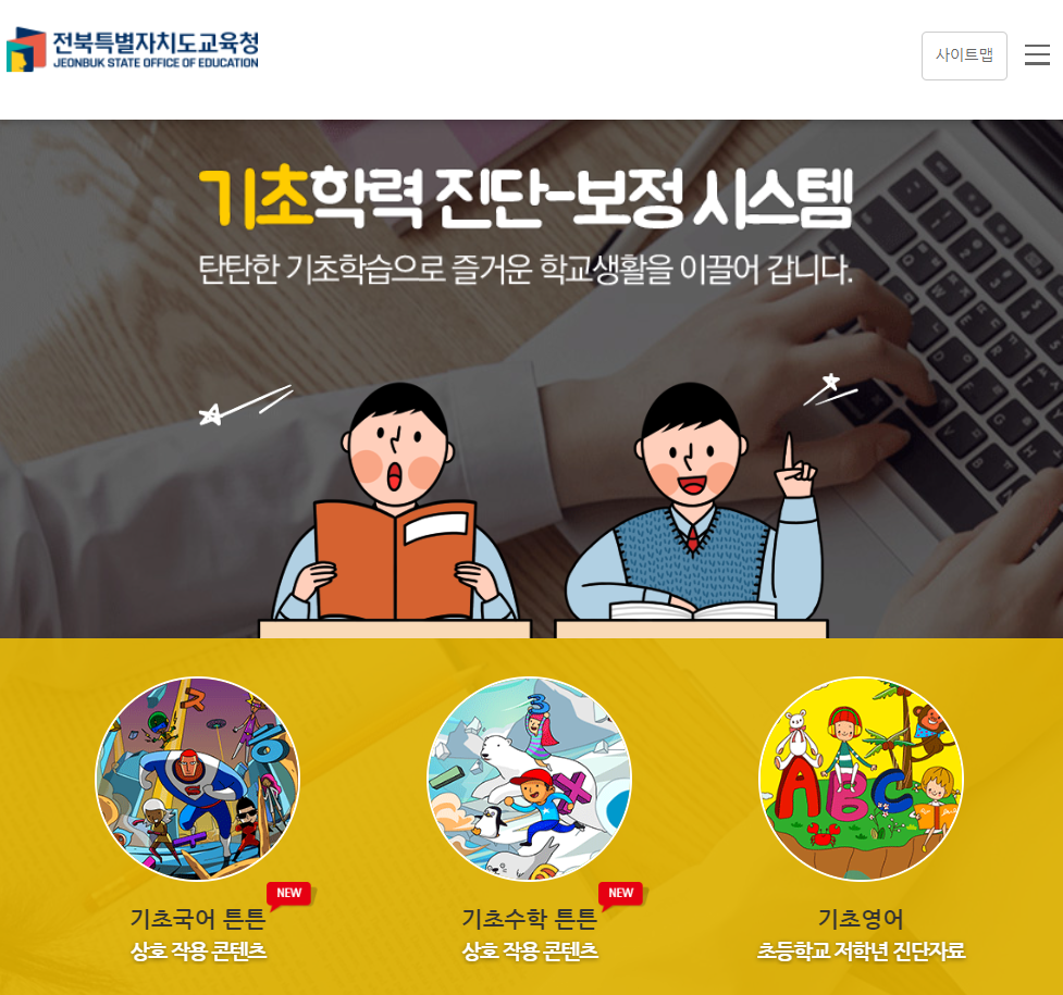 기초 학력 진단 보정 시스템 전북 (basic.jbedu.kr) 바로가기 기초 학력 진단 보정 시스템 전북 바로가기 기초학력진단보정시스템(전북) 교육정보/교육일반 2024.06.24
