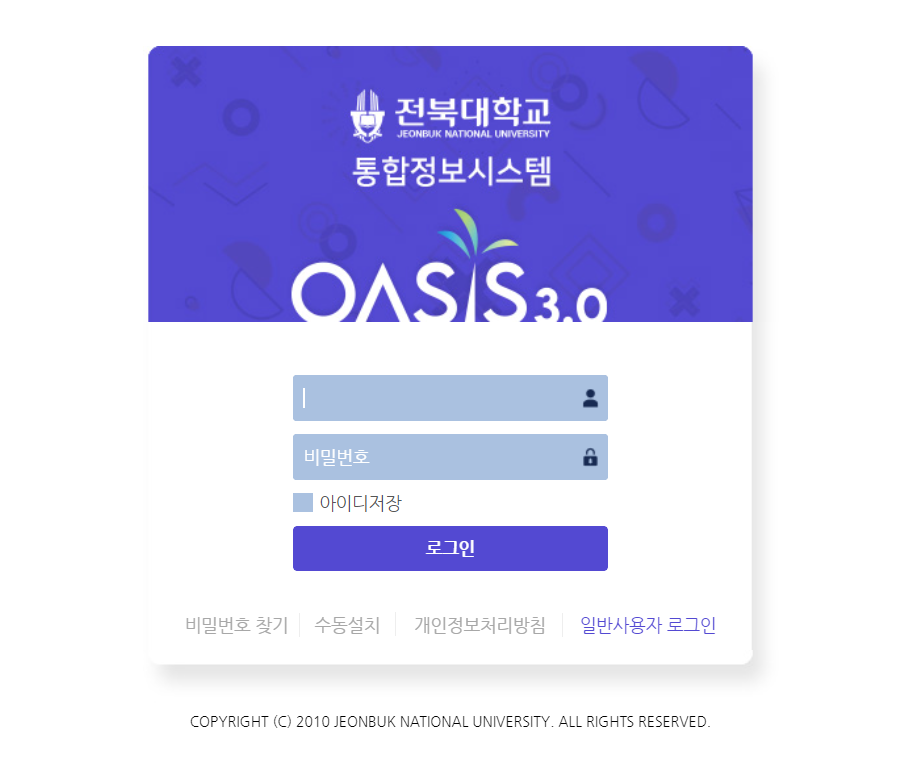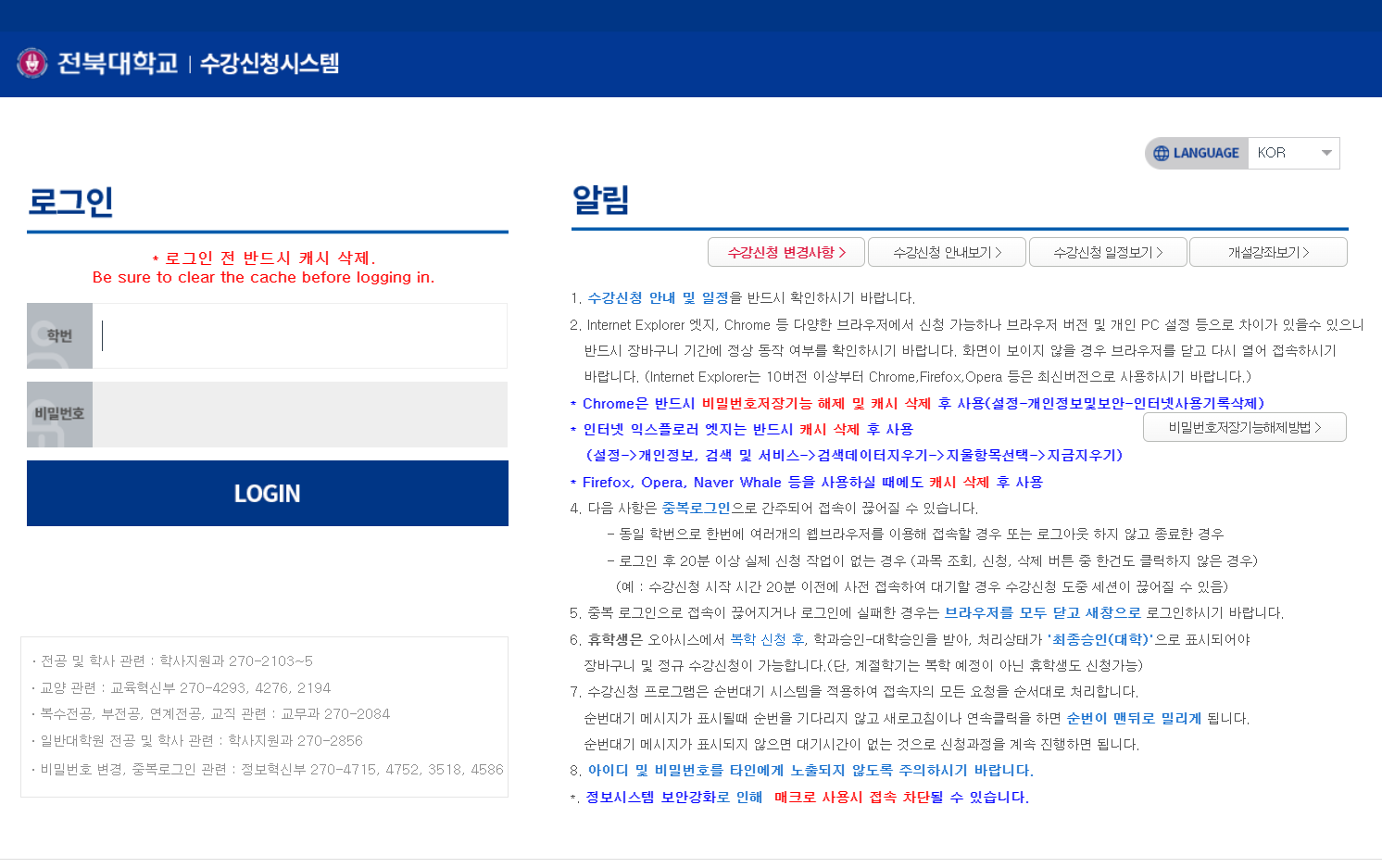 전북대 수강 신청 포털 (http://oasis.jbnu.ac.kr/jbnu/sugang/) 바로가기 전북대 수강 신청 포털 바로가기 전북대 수강신청 교육정보/고등교육 2024.08.01